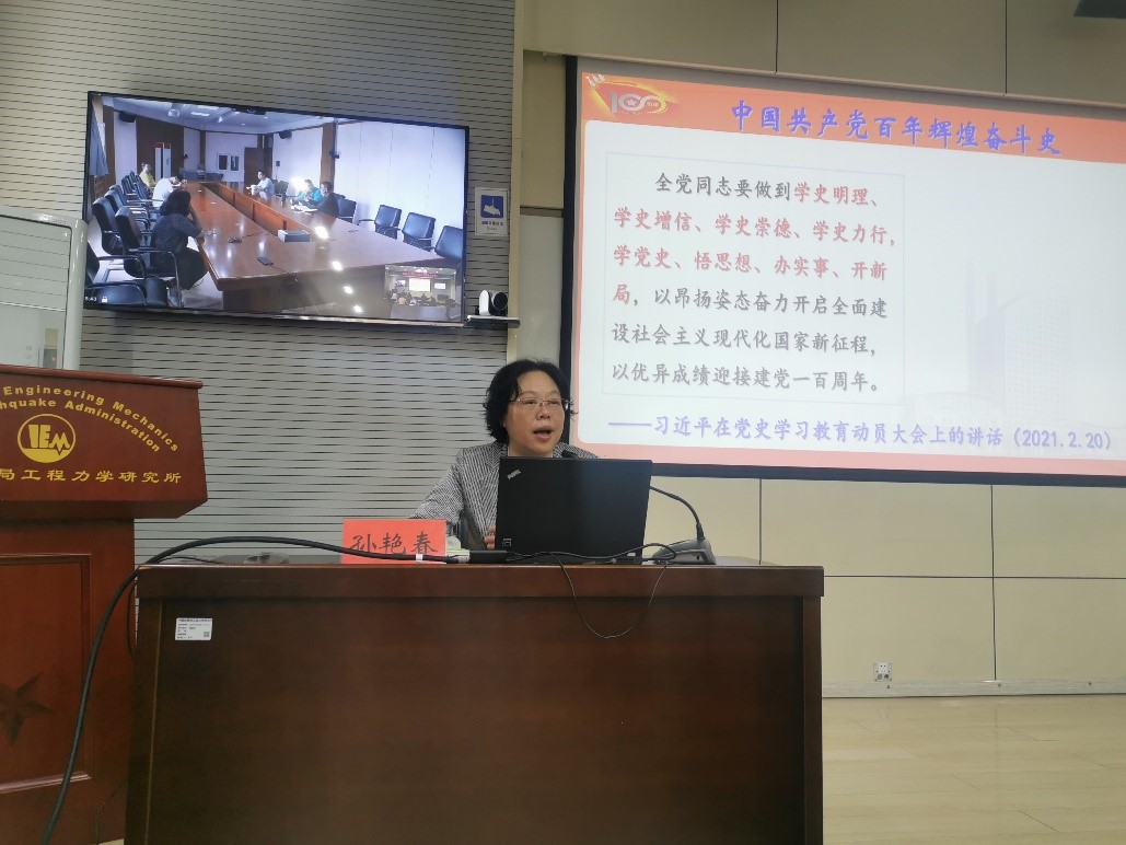 張孟平書記總結會議并指出:一百年來中國共產黨經歷了百折不撓的曲折歷程,形成了一系列偉大的精神和輝煌的成就,我們要深刻感悟思想偉力,汲取營養智慧,將黨史學習成果轉化為奮進新時代的磅礴力量,推進我所的科技創新和深化改革,為防災減災事業做出新的貢獻!