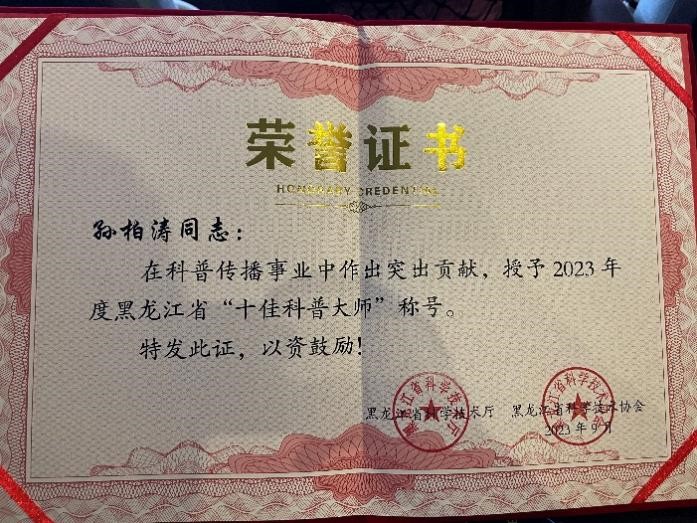 我所孫柏濤研究員榮獲2023年度黑龍江省“十佳科普大師”稱號(hào)