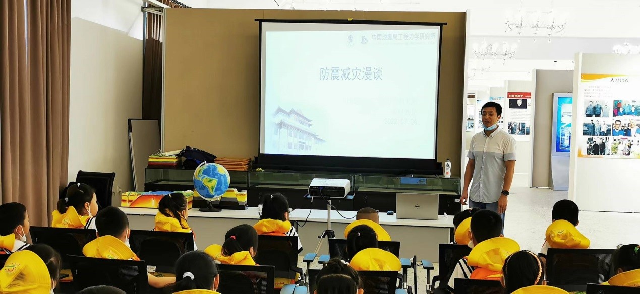 發布時間: 2022-07-07 點擊數量:9471為更好的宣傳防震減災知識,從小培養幼兒防震減災意識,蘭寧幼兒園于7月7日到我所開展了豐富多彩的地震科普宣傳活動。