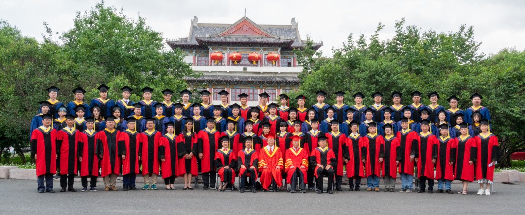 在學(xué)位授予儀式的最后,全體領(lǐng)導(dǎo)、師生到大樓前合影留念。