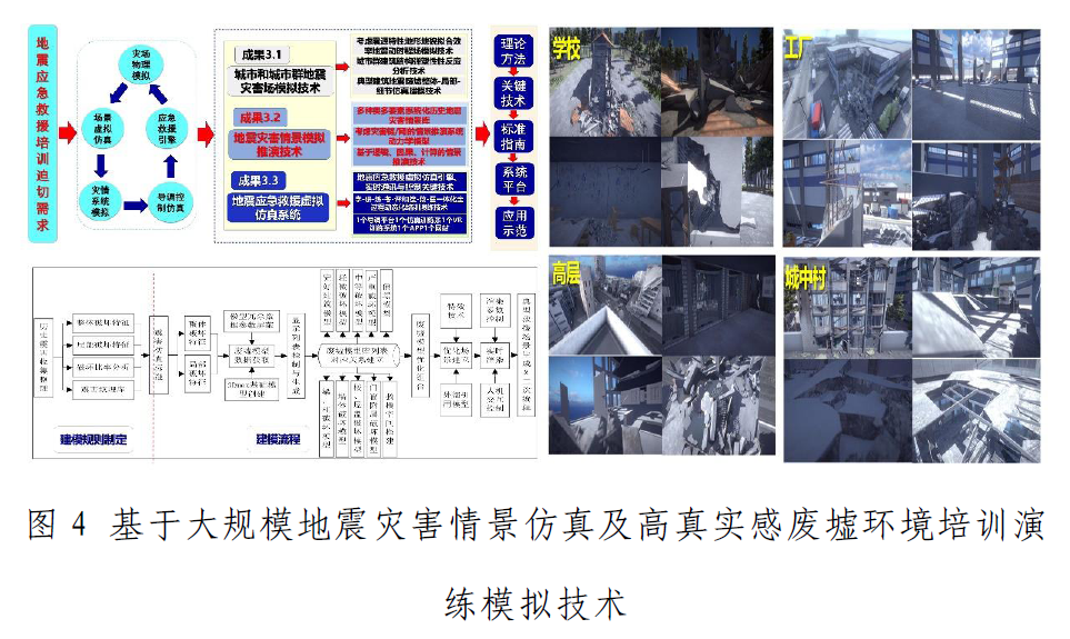 項目研發了考慮“學-研-練-考-評”和“搜-救-醫一體化”全過程動態化培訓演練技術、地震應急救援虛擬仿真引擎、實時通訊與控制等關鍵技術,形成了單機、網絡和手機端一整套的大規模救援現場場景仿真與搜救培訓演練模擬技術系統,成果總體達到了國際先進水平,在提升地震應急指揮能力、地震應急救援能力、地震災害風險認知能力等方面具有廣泛的應用前景。